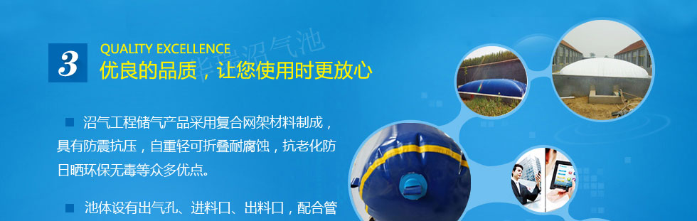 生產工藝,高性能的檢測設備和完善的質量保證體系,為客戶打造了一批精致的沼氣氣囊設備。隨著國家擴大內需加大建設投資力度,我們將獲得更多的發展機遇。公司始終堅持人才第一,科技興企的發展戰略,與很多知名企業建立了良好的浮罩式沼氣池合作關系。公司在成立之初,即深刻思索服務管理發展之間的關系,遵循拓展提高盤活多維的沼氣氣囊經營方針得了各種贊譽。高效的宗旨使本公司在這日新月異的經濟大潮中大步前進。公司遵循“客戶至上、簡明高效、創新無限、盡心盡力”的原則,打造了一家擁有自主知識產權的高規格浮罩式沼氣池公司。
